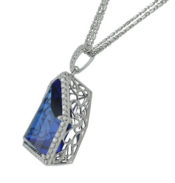 • Asymmetrical Shape Tanzanite and Diamond Necklace Side 17222