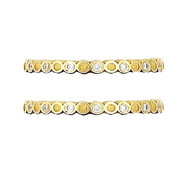 Hidalgo 18k yellow gold diamond ring guards feature plain gold circles and bezel set diamonds all around weighing 0.16 carats.
