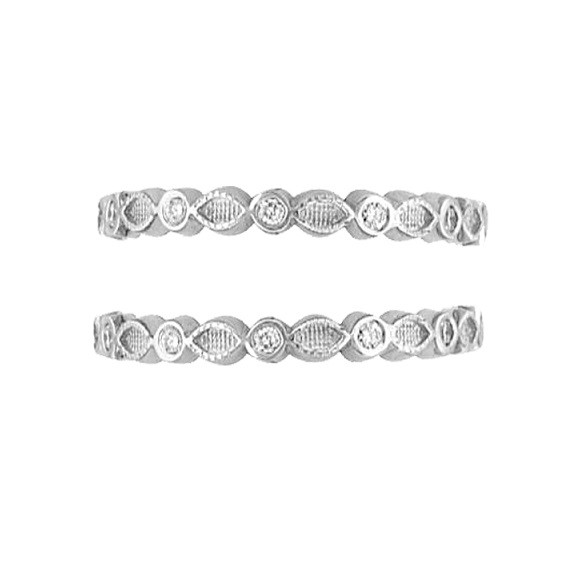 Hidalgo 18k white gold diamond ring guards feature plain oval shape gold alternating with bezel set diamonds weighing 0.12 cts all around.