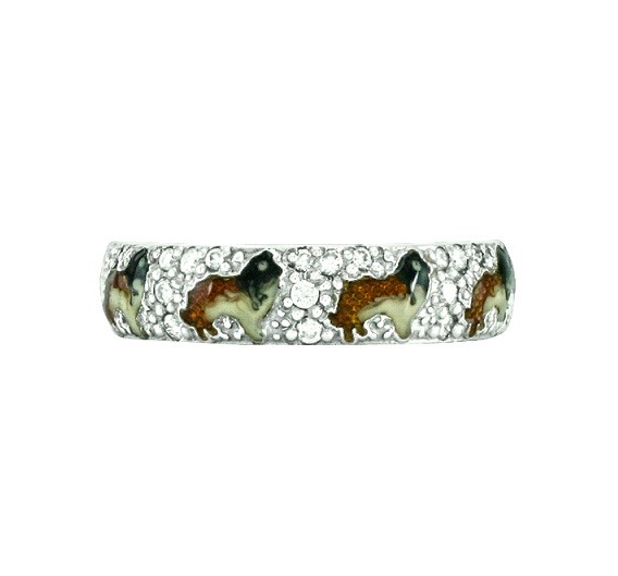 Hidalgo enamel Collie dogs ring features Collie dogs in enamel and pavé diamonds weighing 0.23 cts half way around crafted in 18k yellow gold.