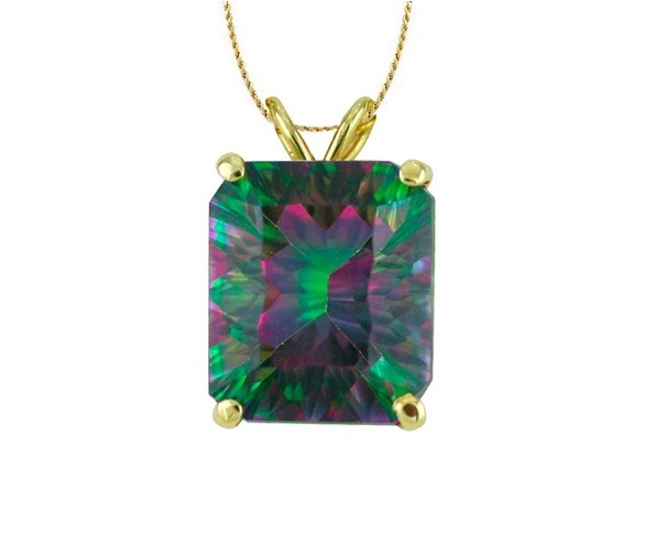 Truly classic, this emerald cut mystic topaz pendant features a burst of sparkling mystical hues emitting from this emerald cut mystic topaz gemstone expertly prong set in gleaming 14k yellow gold for an ultimate shine. When worn, this glamorous emerald cut mystic topaz pendant looks simply amazing especially when the colors catch the light and reflect additional iridescent colors.