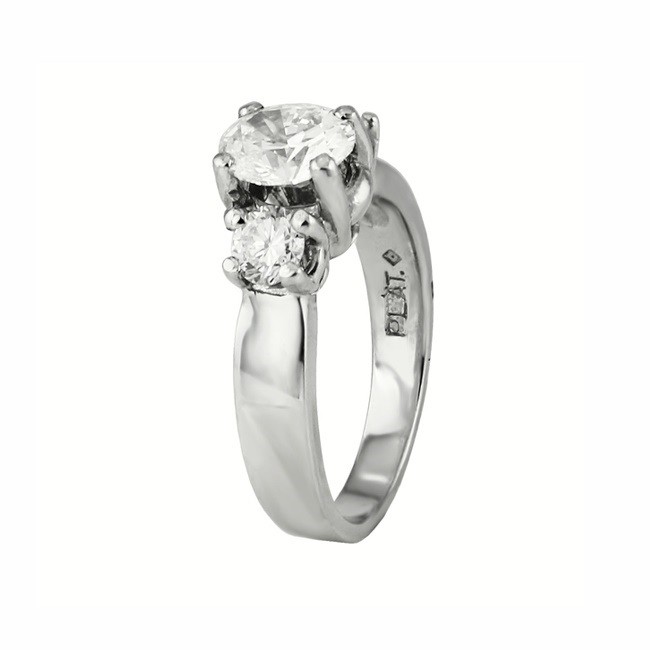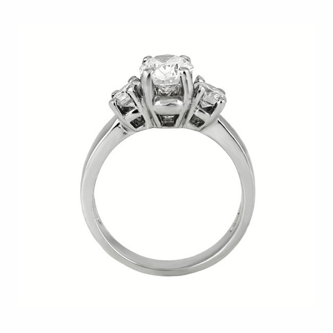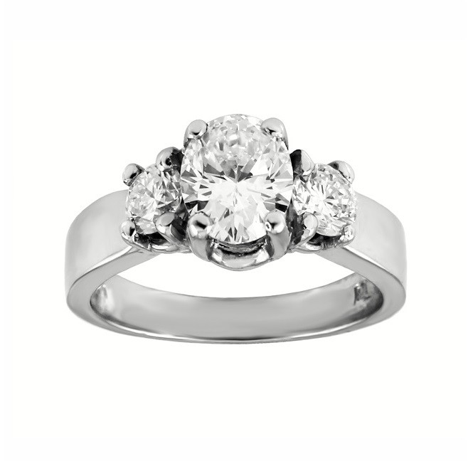 Classic and timeless, this exquisite three stone oval diamond ring presents a pair of perfectly matched round cut side diamonds to complement a ravishing oval shape diamond center crafted in perdurable platinum. This graceful three stone oval diamond ring can be an engagement or anniversary ring option.